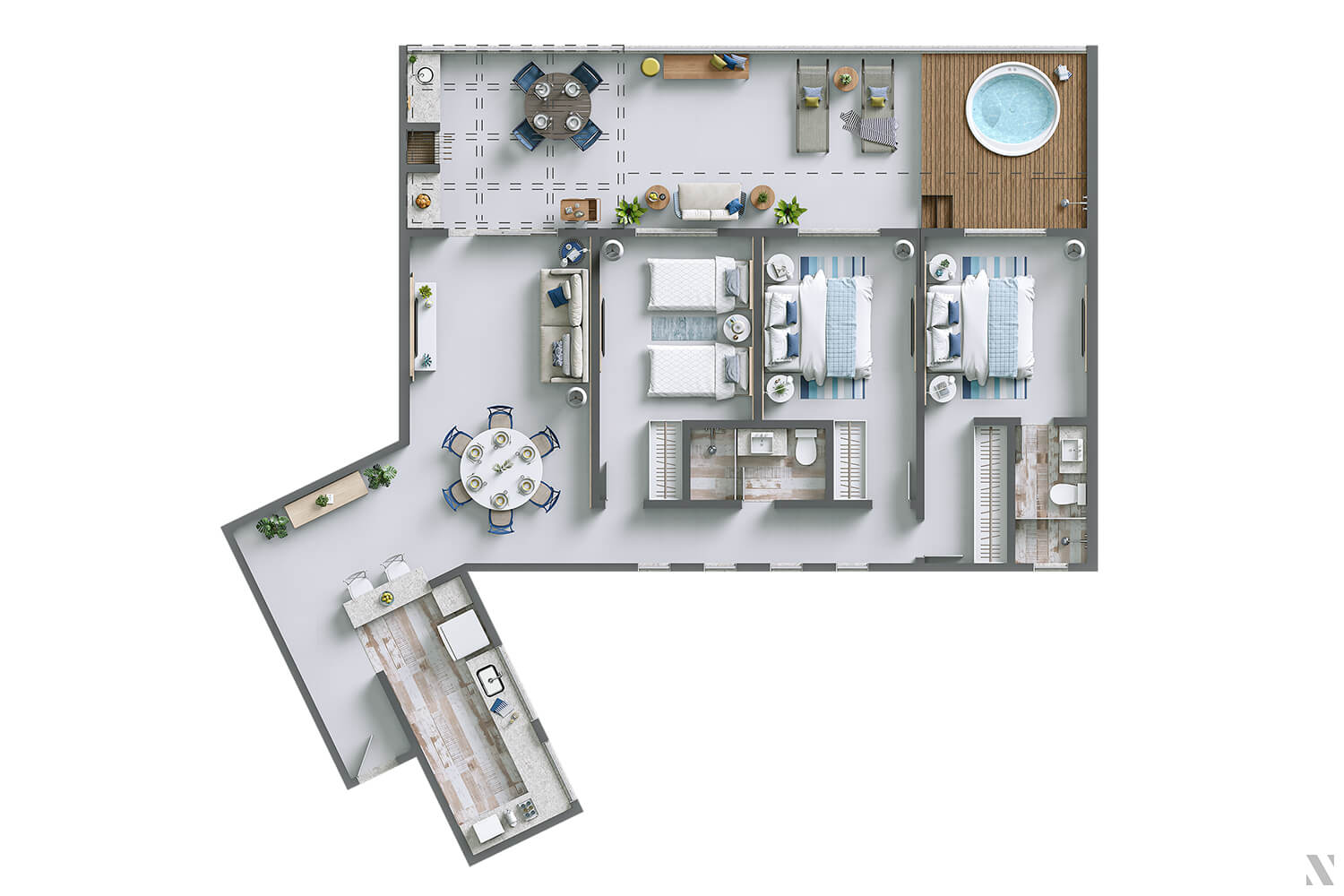 Suas férias em Arraial do jeito que você sempre sonhou: em um cenário paradisíaco, dentro de um condomínio com estrutura de hotel. Uma propriedade totalmente planejada de acordo com políticas de sustentabilidade, em uma região bastante preservada. Lagoas e praias com areia branca e água cristalina que muda de azul para verde, passeios de barco, mergulho e pôr do sol em mirantes naturais esperam por você.